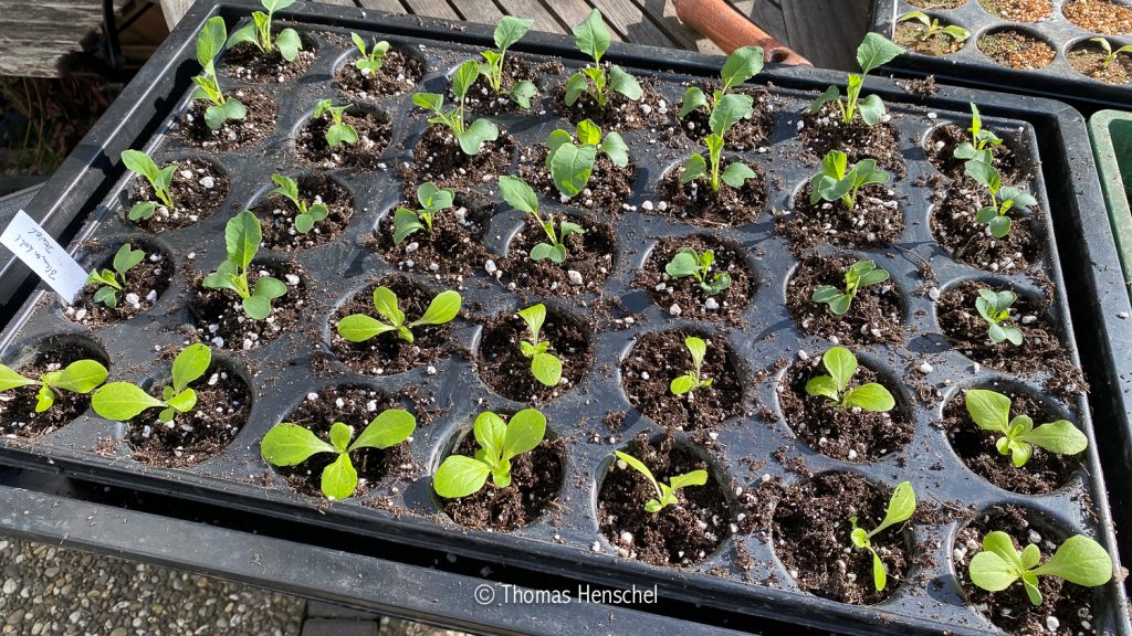 Normalerweise säe ich in die praktischen Multitopfplatten so aus, dass ich mir das Pikieren spare und die Pflanze nicht zusätzlich stresse. In diesem Fall war ich mir aber nicht sicher, ob das Saatgut aufgrund seines Alters eine ausreichende Keimfähigkeit aufwies. Nunja, es kam, wie es kommen musste… Pro Töpfchen gingen mindestens drei Samen auf, was dazu führte, dass ich nun doch pikieren musste. Blumenkohl ist also nun ausreichend vorhanden, und kann in etwa zwei Wochen ausgepflanzt werden.