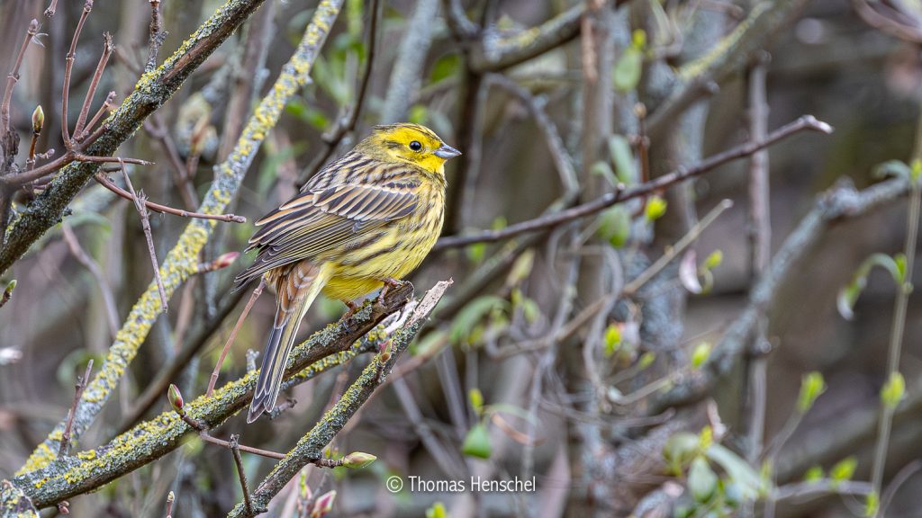 Es ist bewölkt und windig aber die Vogelwelt um und im Naturschutzgebiet „Hahnheimer Bruch“ wird langsam wieder aktiver. Während die Bachstelzen langsam wieder zurück kommen und Gefiederpflege nach der Reise betreiben, üben die Goldammern schon ihren typischen Gesang.