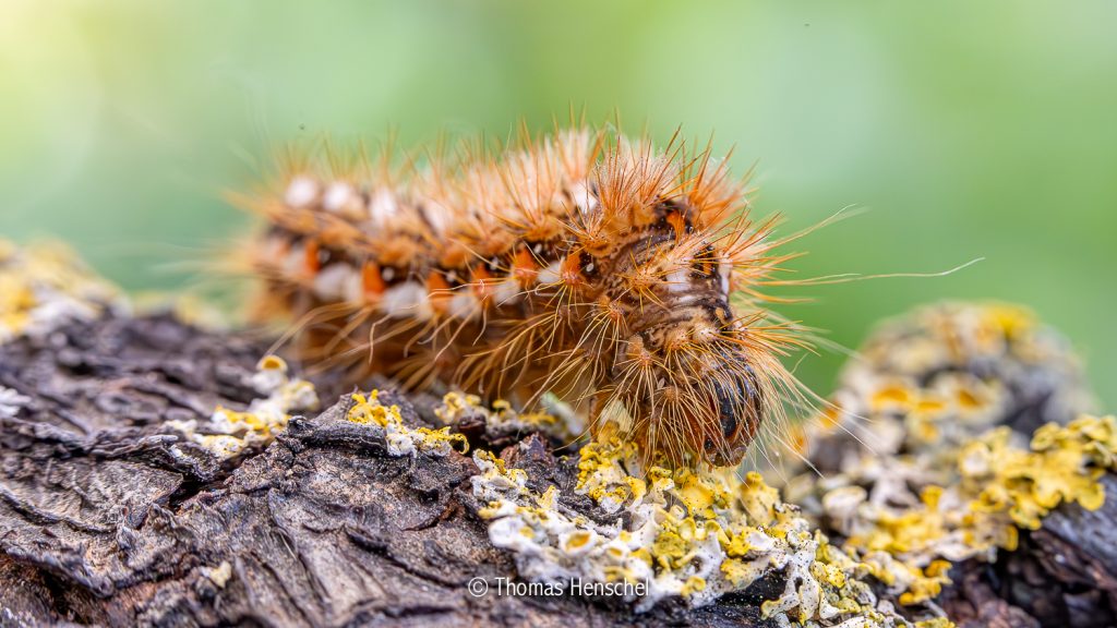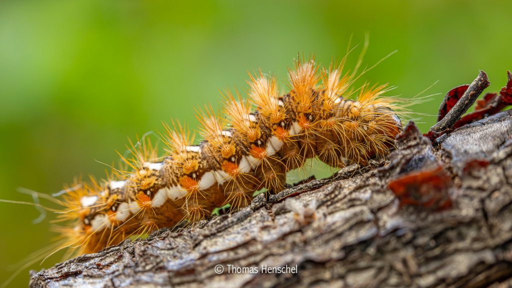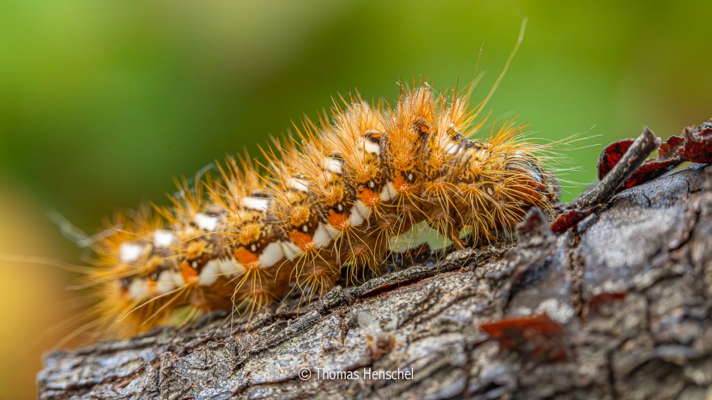 Auch Ampfer-Rindeneule (Acronicta rumicis) genannt. Hier sehen wir die Vermutlich letzte Generation Raupe des Jahres, die als Puppe überwintern und im neuen Jahr als unscheinbarer, gräulicher Eulenfalter schlüpfen wird.