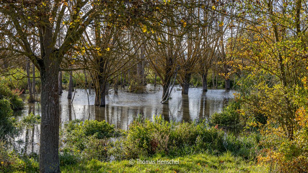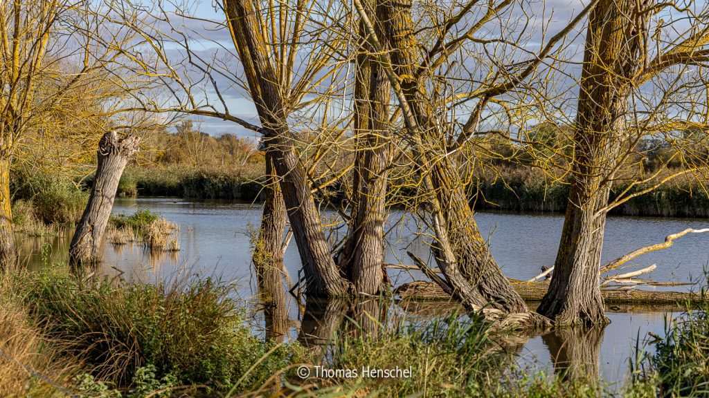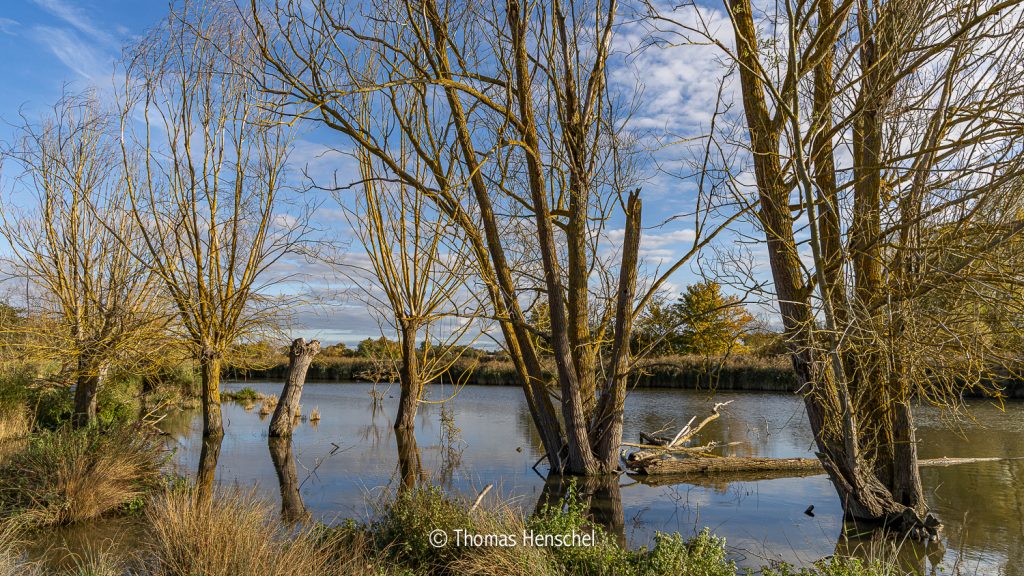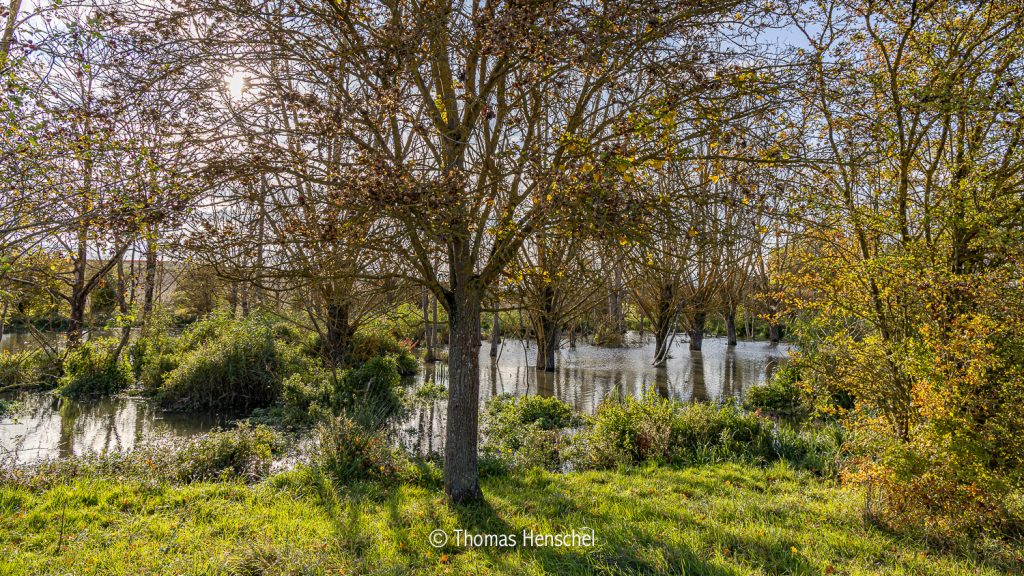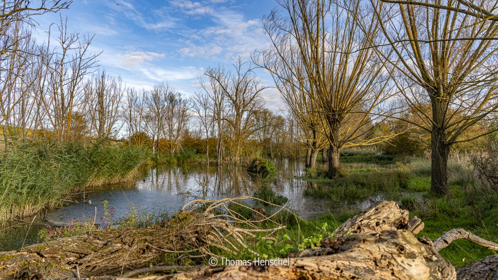 Ein sonniger Herbsttag im Oktober läd dazu ein, mal wieder einen Teil des Bachpatenschafts-Abschnittes abzulaufen. Die Schilfflächen des Hahnheimer Bruchs leuchten in der Sonne während das Schnattern der Graugänse aus der großen Wasserfäche mitten im Schilf herüber schallt. Unweit in Richtung Sörgenloch verbreitert sich die Selz deutlich durch die Baumaßnahmen des Bibers. Die so entstandenen, seichten Uferzonen sind hervorragend als Kinderstube für junge Fische und vielerlei Insekten geeignet. Auch der Eisvogel profitiert bei der Nahrungssuche von dieser Entwicklung.